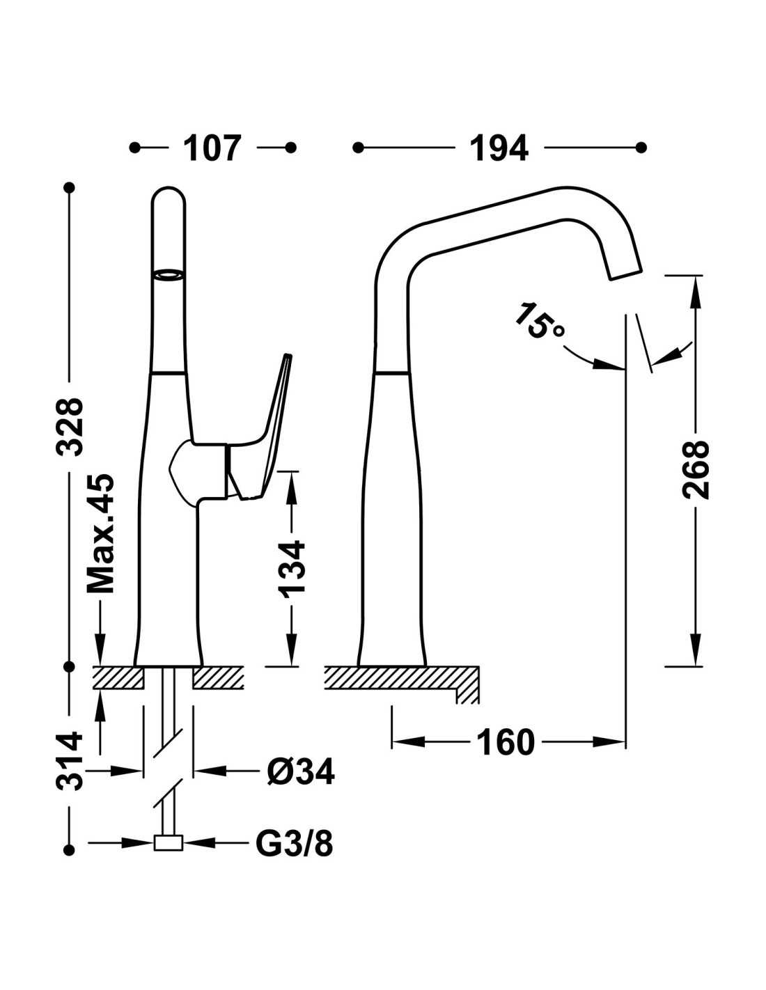 Bateria umywalkowa wysoka stojąca z boczną dźwignią TRES - FUJI 28164701KMB