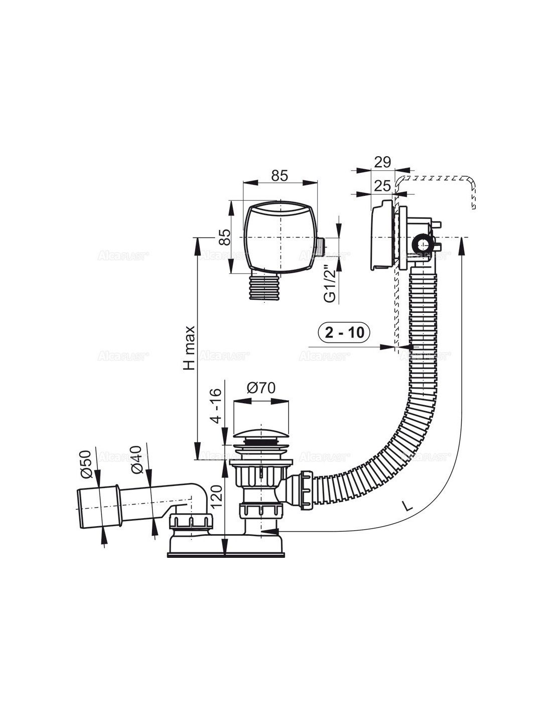Alcaplast Syfon wannowy, korek CLIK/CLAK z funkcją napełniania przez przelew (długość 100 cm), A508KM-100