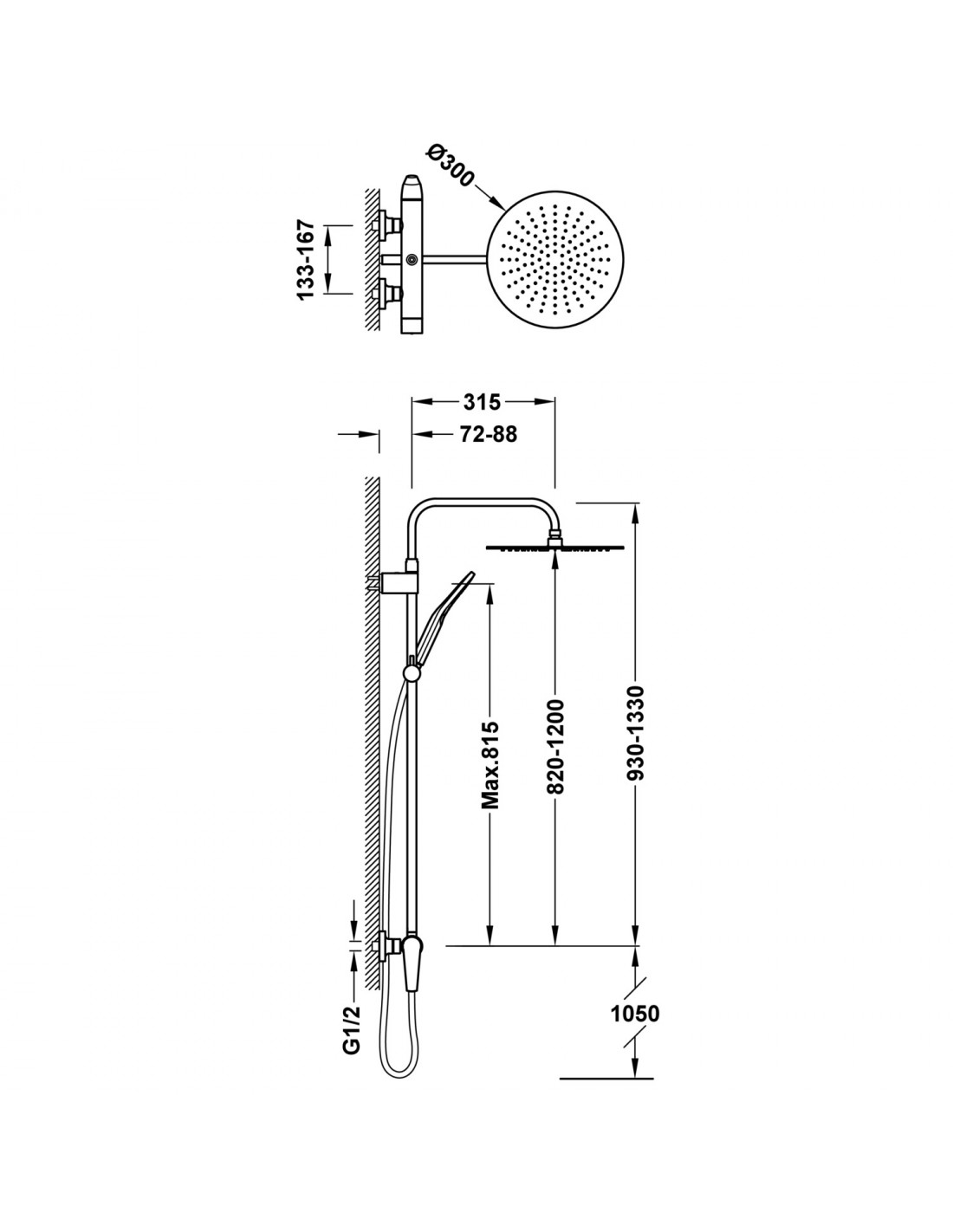 Zestaw prysznicowy TRES - CUADRO komplet słuchawka - drążek - deszczownia 300x200 mm...